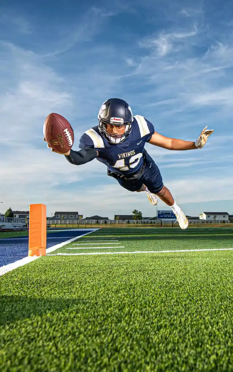 We photograph your athletes on actual football fields, basketball courts, and baseball diamonds – the same places where they play and compete. This approach creates authentic, natural portraits that capture the true spirit of youth sports.
